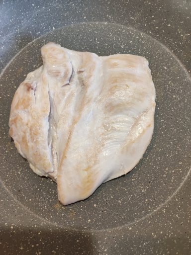 - Pour la volaille je prends un filet de poulet et je demande au boucher de l'ouvrir en deux sans le séparer pour avoir une seule tranche d'épaisseur égale.